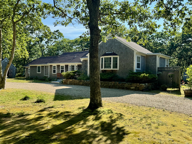 This bright and cheerful, sunny retreat is truly tranquil, down a private country road, adjacent to protected woods and miles of walkable roads with little to no traffic. Yet it's just a little over a mile from West Tisbury village where you have Alley's General Store, 7A Foods featuring take-out breakfast and lunch, the gas station, the West Tisbury library, the old Ag Hall where there are Farme...